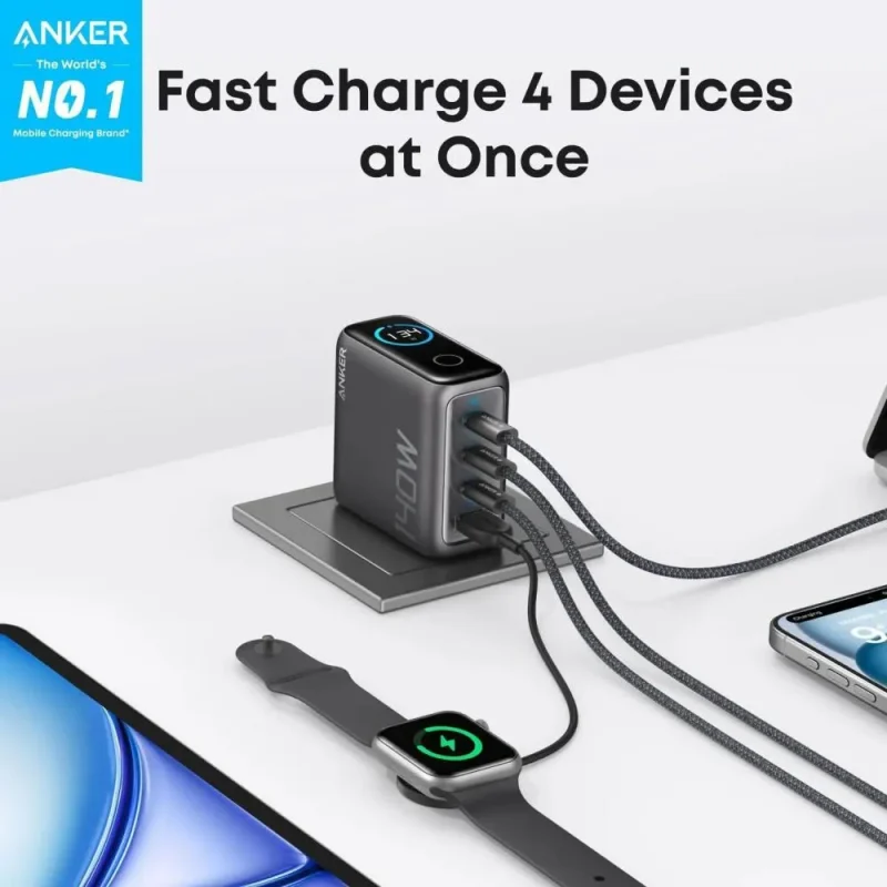 Anker Zolo 140W Laptop Charger (B2697) – 4-Port PD 3.1 with Touch Control Cable